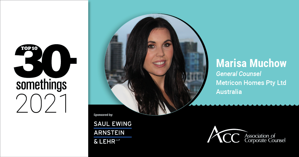 As a young child in the small Queensland town of Bundaberg, Marisa Muchow would hide among the furniture on display in her parents’ store and listen as they spoke with entrepreneurial zeal. It was growing up watching her parents in business that led to Marisa’s decision to be in-house counsel. “Being in-house allows legal counsel to be a strategic business partner to the company they advise, having an in-depth knowledge of the business, its mission, and how to advance that mission,” she says.
