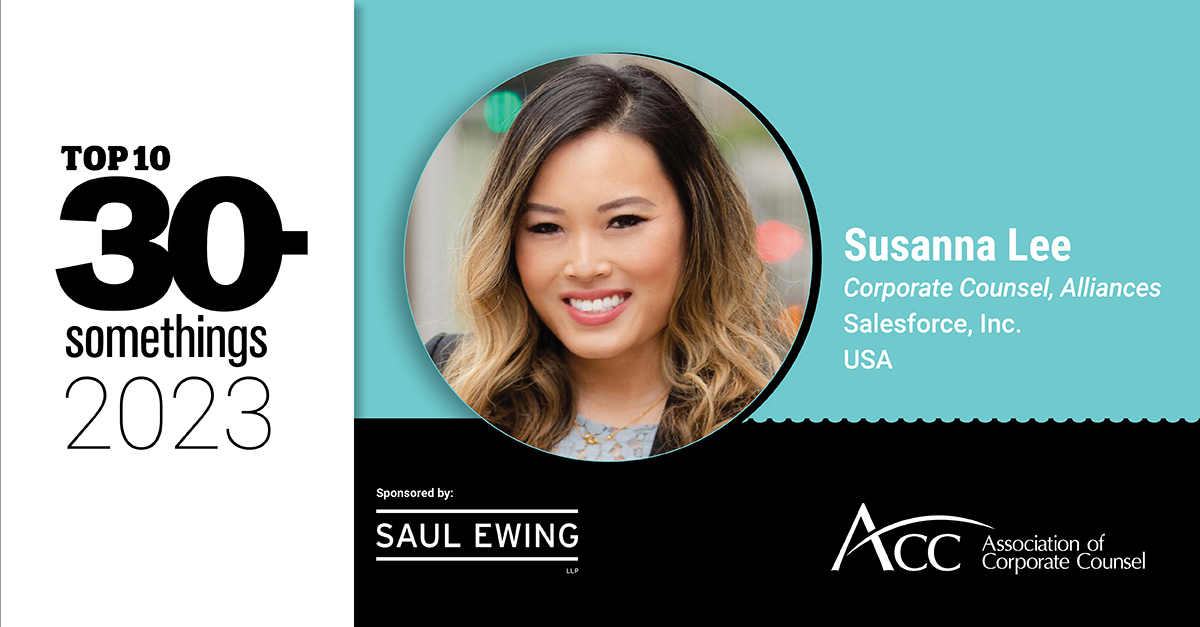 Susanna went directly in-house, still considered an unusual career move. She enjoyed learning how businesses operate. “Having exposure to different parts of the company, whether filing articles to establish an LLC, or working on a joint venture, or understanding how a company generates its revenue allows in-house counsel to build a broad skillset,” she says.