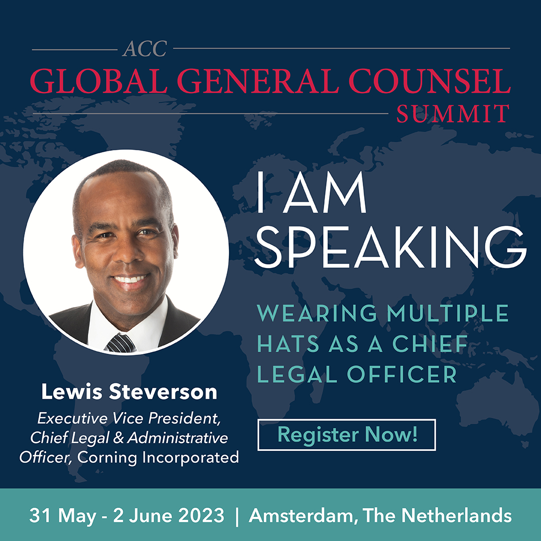 Seats are filling fast, act now to join this elite group of legal and business leaders in Amsterdam on May 31 – June 2 at the ACC 2023 Global General Counsel Summit. Register today!