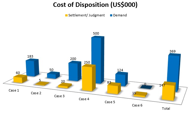 • High risk: >US$500,000 in potential settlement or judgment cost