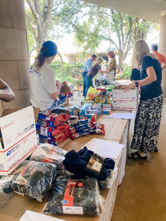 The event mobilized attendees to volunteer their time fill care packages with socks, snacks, and personal handwritten notes of support, encouragement, and gratitude from DFW chapter members and Reed Smith attorneys and staff.