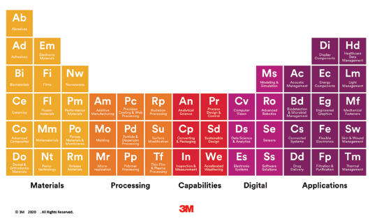 “I am continually immersing myself in the business,” he continues. “I love meeting 3Mers and asking them what they’re working on and what they do.” 3M has over 50 Customer Innovation Centers around the world that showcase the company’s diverse array of technologies — from biomaterials and micro-replication to advanced robotics and software solutions. 3M’s 51 technology platforms are displayed in a periodic table to illustrate their breadth and how they can be deployed and combined to solve customer problems and address societal needs.