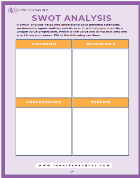 Sample SWOT Analysis culled from Jenny’s website - https://jennyfernandez.com/
