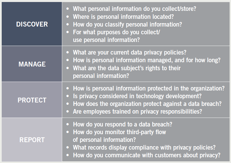 - Production processes: Produce and deliver requested personal information securely. Many may need to improve their technical security.
