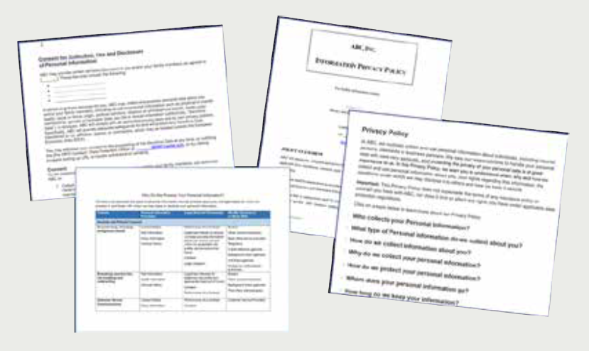 - Privacy policies and notices;