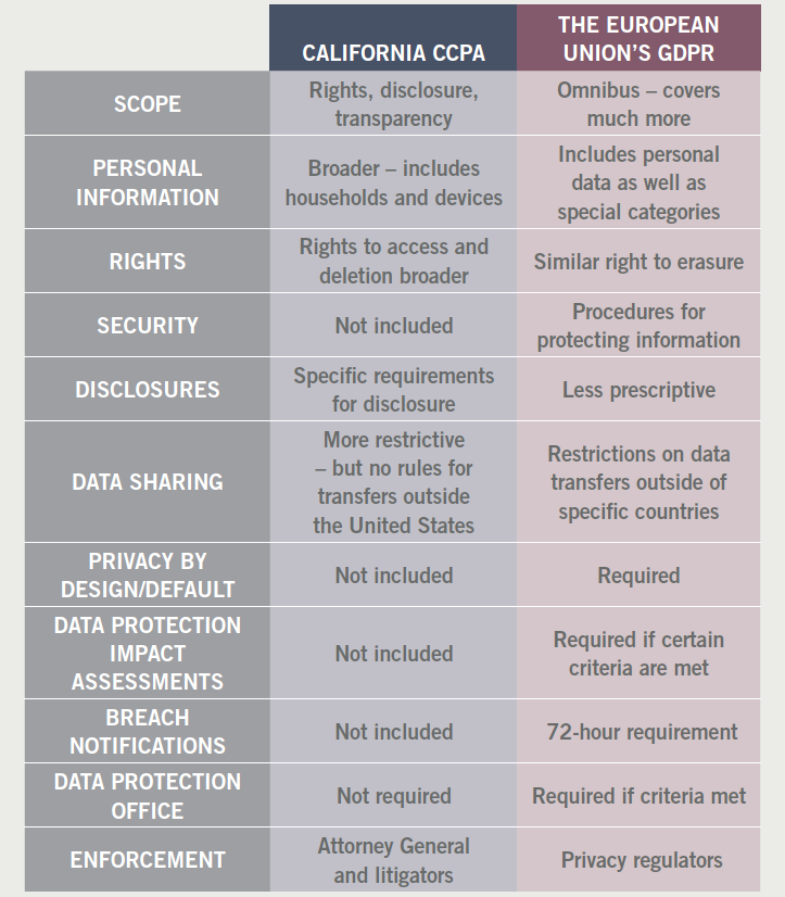 Table 1. CCPA compared to the European Union’s GDPR