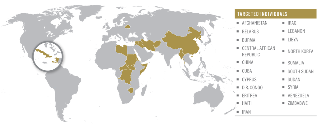 Sanctions are economic measures or actions taken against a target to influence its behavior, policy, or actions. They can be unilateral and multilateral. Unilateral sanctions are imposed by a single country while multilateral sanctions are imposed by multiple countries working together to impose sanctions against a target. Sanctions can also target geography or activities. Comprehensive geographic sanctions apply to specific countries or regions (currently, Cuba, Iran, North Korea, Syria, and the Crimea region of Ukraine). Other countries are subject to more narrow, targeted sanctions programs. For example, Russia is the subject of a new “sectoral” sanctions program that prohibits certain types of transactions with certain prohibited parties. Countries like Iraq and Sudan are also currently subject to narrow sanctions that only prohibit transactions with certain designated parties. Thematic sanctions focus on particular issues that may cut across geographic boundaries (e.g., counter-narcotics, counterterrorism, and cyber-related sanctions). Sanctions may also be used to protect the financial system from international criminals by influencing actions that lead to a reduction of money laundering, terrorist financing, and the trafficking of illegal goods by reducing the flow of funds.