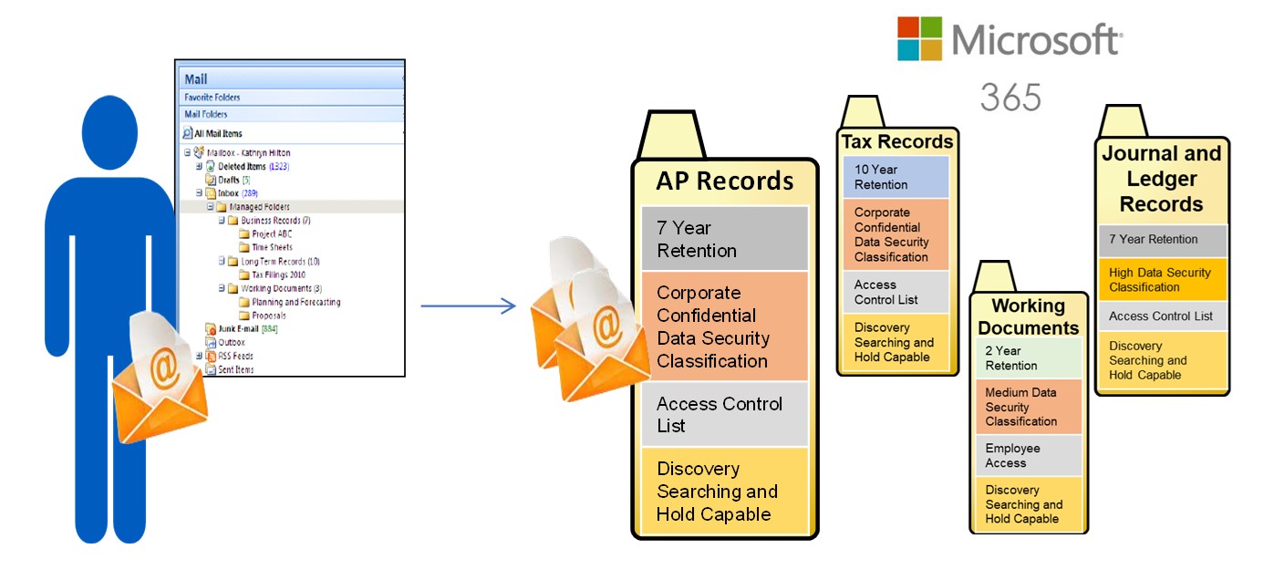Figure 6. Information repositories such as Office 365 can be configured to apply both record retention and privacy/data security classification rules to files and emails.