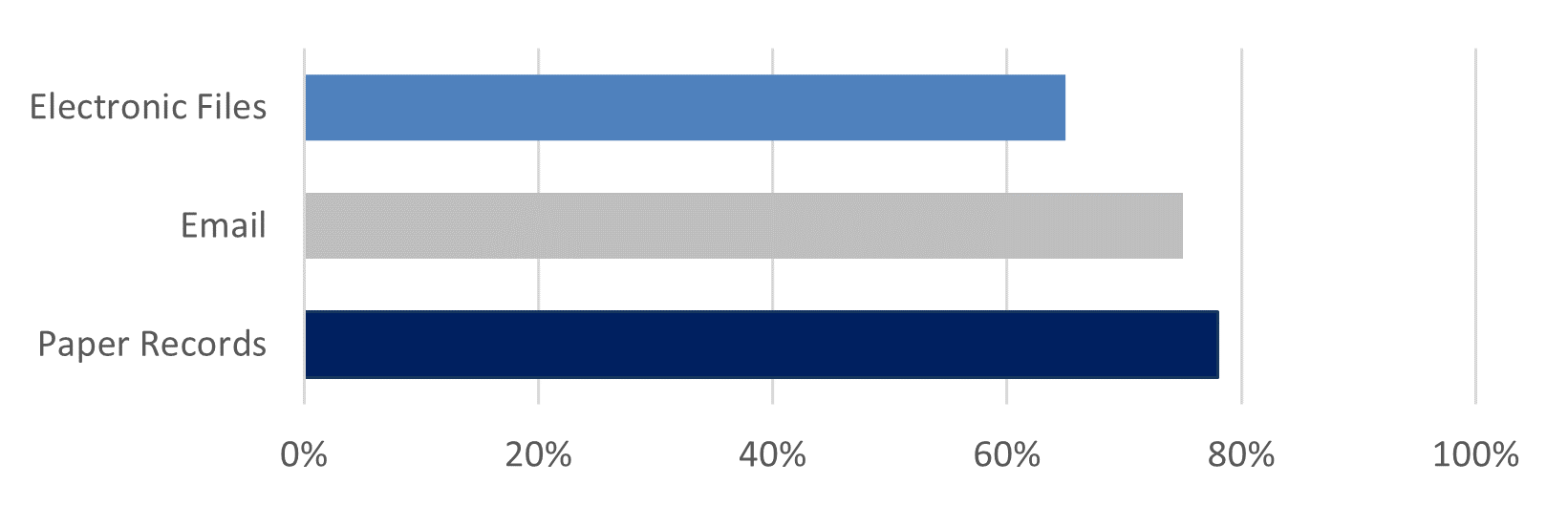 Figure 1. Average percentage of expired records and low-business-value information that can be deleted while maintaining compliance and retaining information still needed by the business. Source: Contoural