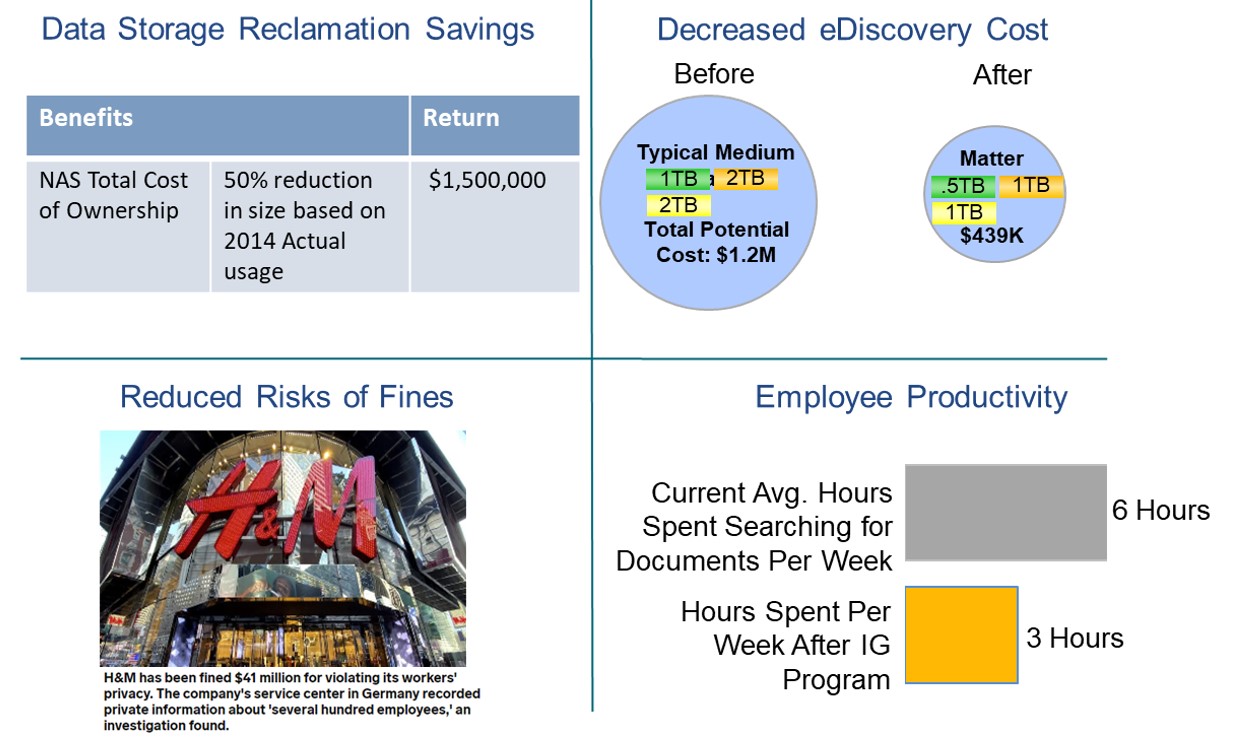 Security and protection – Many privacy and data protection laws require an enhanced level of security to protect against risks to individuals or the personal information, including breaches. Likewise, records management regulations require strict protection of records and other critical information. Note that files, emails, and other types of unstructured and semi-structured data in the aggregate likely contain significant amounts of personal information as well as records. Storing files, emails, and other data on ungoverned and unsecure locations such as laptops, file shares, and employee-controlled box locations is simply inviting risk.